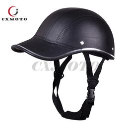 A black motorcycle helmet with a smooth surface and a white logo on the side is displayed against a white background. The helmet has a chin strap with a buckle and is positioned upright. | Leather Half Motorcycle Helmets Australia - High Quality ABS Leather Safety Pratective Motorcycle Half Face Helmet Baseball cap for Men and Women | 47d5a6b42d7b83824ed9d6c687082aace2941082ad67e02e030615ea33075e88 | 000910697174 | 0 | 0 | 34 | 22 | 0 | 0 | |