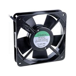 A black computer fan with a green label is shown from the side. The fan has three screws visible on the side and a black cable attached to the top. The label reads 'SPRITAT' and provides specifications such as '12V DC' and '0.2A'. | Picture of VENTILATOR AC 115V 120X120X25 SUNON | 0f7a2106d43a6cc6bd20650eedafd9fa994a764ab606c79d7492880a762629d0 | 000910697173 | 0 | 0 | 43 | 7 | 0 | 0 | |
