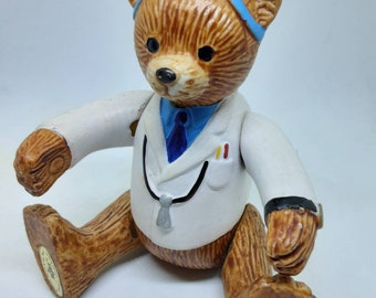 A vintage teddy bear with a stethoscope around its neck, wearing a white doctor's coat with a blue tie, a white shirt, and a name tag that reads 'Dr. Teddy'. The bear has a blue headband and is sitting on a white background. | Powder Blue Health Check Care Bear Healthy Baby Dr Teddy Bear Medical and Nursing Icons Printed Polyester & Poly-Spandex Fabric By The Yard | 11fedadd981497f25925a13ab23d7213c4c91d7caa606c9411e2a42d6fc728d6 | 001065743826 | 0 | 0 | 43 | 23 | 0 | 0 | |