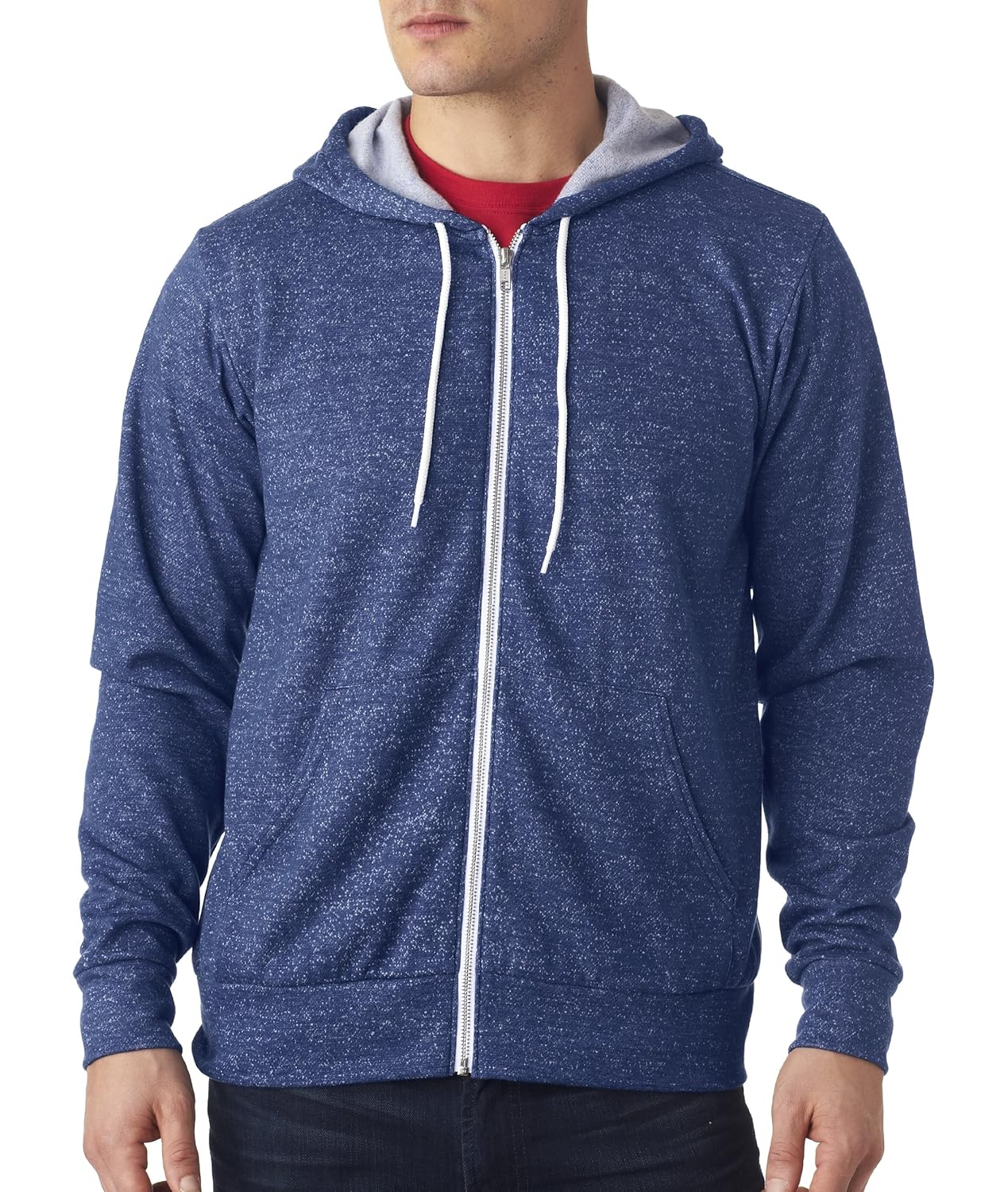A man wearing a blue hoodie with a white zipper and a red t-shirt underneath. | Canvas unisex Poly-Cotton Fleece Full-Zip Hoodie Bella 3739 | 6d132e6083a58499946fca4e548e4102a1917410f01f7438c09907e14689e122 | 001065743837 | 0 | 0 | 15 | 8 | 0 | 0 | |