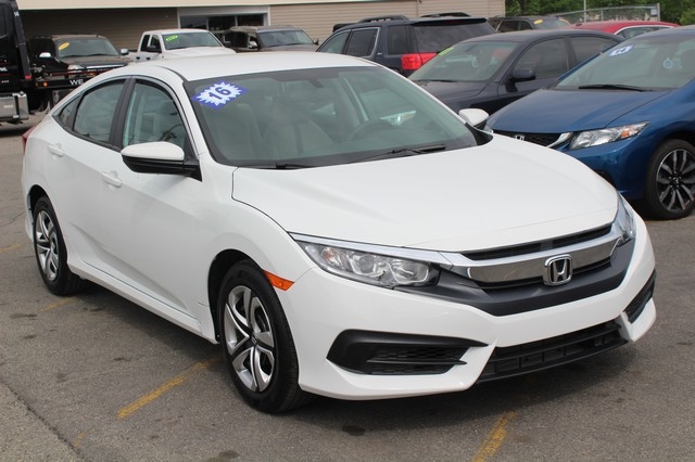 A white Honda Civic with a '10' sticker on the windshield is parked in a lot with other cars. | 2016 Honda Civic Sedan 4dr CVT LX | ba9fedfe73e767069b707fce50725eba65ce913362c555404dfcb9bcea26bd40 | 001065743909 | 0 | 0 | 19 | 7 | 0 | 0 | |