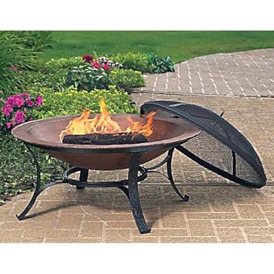 A black metal fire pit with a fire burning inside is placed on a brick patio. The fire pit is surrounded by a variety of potted plants and flowers, creating a cozy outdoor setting. | CobraCo FB6132 30 inch Round Cast Iron Copper Finish Fire Pit with Screen and Cover | 7a089b626f524f4314f0a1f6648eb3c3f7b334bf759b7adaefc1e9db8f4693bf | 001065756206 | 0 | 0 | 34 | 15 | 0 | 0 | |