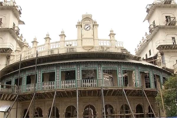 A large, ornate building with a clock tower is under construction. The building features intricate architectural details, including a balcony with a decorative railing and a dome-like structure. There are scaffolding and construction materials around the building, indicating ongoing work. The sky is overcast, and the overall color palette is muted with a dominance of grays and whites. | tourism department will make six heritage properties hotel | 5cf1e0067067a661b8e72d0b3e4e05b062778e4f61498949a98b2ebc1c9dece6 | 001065756082 | 0 | 0 | 58 | 8 | 0 | 0 | |