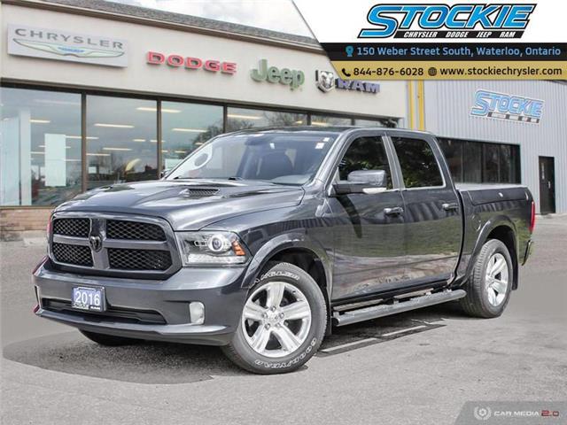 A black pickup truck is parked in front of a Dodge dealership. The truck has a shiny exterior with a chrome grille and is equipped with large wheels. The dealership has a red and white sign with the word 'Dodge' on it, and the building has a modern design with large windows. | 2016 RAM 1500 Sport (Stk: 32418) in Waterloo - Image 1 of 27 | fe9dca7d4abdd6f22c992c88a445c7156cfa5c40a3c8056175093f4584e0304f | 001065743987 | 0 | 0 | 52 | 13 | 0 | 0 | |