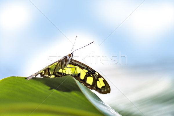 A yellow butterfly with black and white spots on its wings is perched on a green leaf. | butterfly papilio Stock photo \xc2\xa9 w20er | 11006a22148cee0798098bea65890ae89780cd983b5a1e298945aa66915fa1af | 001065744005 | 0 | 0 | 17 | 6 | 0 | 0 | |