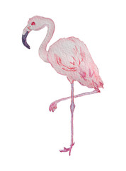 A watercolor painting of a pink flamingo with a detailed beak, standing on one leg with the other tucked under its body. The flamingo has a soft pink hue with subtle shading and texture, giving it a lifelike appearance. The background is a plain white color, allowing the flamingo to be the focal point of the image. | watercolor flamingo bird clipart | 9e2a9c5a0b48bd6667ddf3344748ff21f3abb9a630154dfaff7e2d9cdb794aae | 001065744057 | 0 | 0 | 57 | 4 | 0 | 0 | |