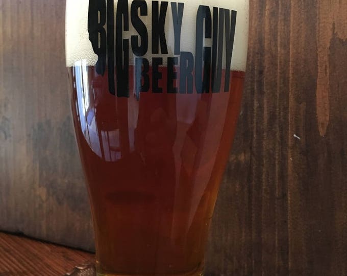 A glass filled with a dark amber liquid, presumably beer, is placed on a wooden surface. The glass has a frothy head at the top and is branded with the text 'BIKSKY CITY BEER' in a stylized font. The background is dark, and the glass is the main focus of the image. | Montana Beer Glass Big Sky Beer Guy | 0692476e7358e5ddd99fd39ab656ca49e53626069c9395fc4171b2dfe7204de9 | 001229695797 | 0 | 0 | 52 | 7 | 0 | 0 | |