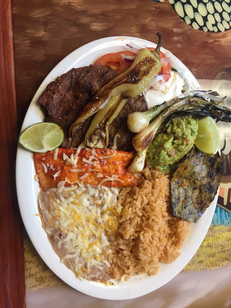 A plate of Mexican food is presented, featuring a variety of dishes including grilled steak, roasted vegetables, rice, beans, and tortillas. The plate is garnished with lime wedges and a sprinkle of cheese. | El Tapatio Restaurant: 1638 University Ave, Green Bay, WI | babccefba8c265e9348bef7ffdd321d578beb80ab75f2b303940334b8e44a762 | 001229695810 | 0 | 0 | 33 | 9 | 0 | 0 | |