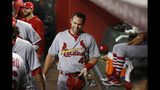 A baseball player in a red and white uniform is walking on a field with other players in the background. The player is wearing a red helmet, a grey jersey with the number 44, and grey pants. He has a baseball glove on his left hand and is holding a baseball bat in his right hand. The field has a red dirt surface, and t... | St. Louis Cardinals' Paul Goldschmidt smiles in the dugout after hitting a two-run home run against the Arizona Diamondbacks during the third inning of a baseball game Monday, Sept. 23, 2019, in Phoenix. (AP Photo/Ross D. Franklin) | d7ec6859fc63cb96f472ba0931beb7549f508ce8502f9ebdbf32044f5a55e57a | 001229696232 | 0 | 0 | 74 | 37 | 0 | 0 | |