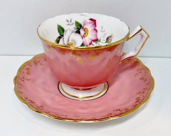 A delicate porcelain teacup with a floral design sits on a matching saucer. The cup has a gold rim and a pink interior, while the saucer has a gold rim and a pink base with a gold floral pattern. The cup is filled with a pink liquid, possibly tea, and there is a small amount of liquid on the saucer. | Pink Aynsley Teacup and Saucer, Antique Tea Cups Vintage, English Bone China Teacups, Pink Teacups, Teatime Teacups, Aynsley Floral Teacups | ce322218cbd0fb208f27f9ee21e3065caf349db467961426070cd013a7acdd69 | 001229696358 | 0 | 0 | 60 | 20 | 0 | 0 | |