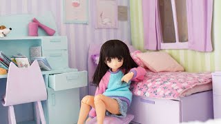 A doll with long black hair is sitting on a purple toy bed in a child's bedroom. The room has pastel-colored walls with a striped pattern, and there is a pink and white polka dot bedspread on the bed. The doll is wearing a blue and pink sweater and denim shorts. The room also features a toy desk with a pink and white p... | dolls craft ideas | 8a8cd8059912dea22a79400bd00d5dd8b22316ed5c040e7745a977a0c9f6d95c | 001229696345 | 0 | 0 | 100 | 3 | 0 | 0 | |