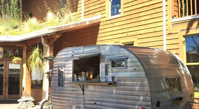 A silver food truck is parked outside a building with a wooden facade. The truck has a serving window with a menu displayed, and there are various items on the counter, including bottles and a coffee pot. The building has a green door and a window with a yellow frame. There is a potted plant on the left side of the doo... | Photo of Juice Bar Sip Juicery at 3029 Se 21st Ave, Portland, OR 97202, United States | 61b5ded2d98e16ddeacc4f22ef599e6951f99ca7e776b0f3692c59a20e607bc8 | 001229696402 | 0 | 0 | 69 | 16 | 0 | 0 | |
