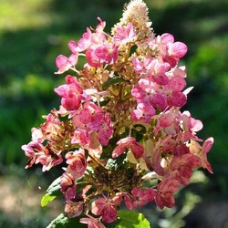 A close-up of a pink flower with a cluster of smaller pink flowers at the top, surrounded by green leaves and stems. The flower is in focus, with a soft background of greenery and a hint of a blue sky. | Hydrangea paniculata 'Magical Fire' | 23b55e2e44b3bbcd2baf522b09087dc990545354600b244e47233ebf2177ef18 | 001229696376 | 0 | 0 | 40 | 4 | 0 | 0 | |