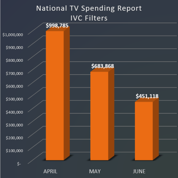 A bar graph displaying the national TV spending report for IVC filters. The graph has four orange bars representing the spending for each month of the year, with the highest spending in April and the lowest in July. The spending amounts are shown in millions of dollars, with the highest being $9.99 million in April and... | IVC Filter Mass Tort Cases - National TV Spending | e7d9498d48fdb8942f94c8c8db9b9f7bc3e6766c8cc63ebd7711bf1295be32d7 | 001229696281 | 0 | 0 | 76 | 9 | 0 | 0 | |