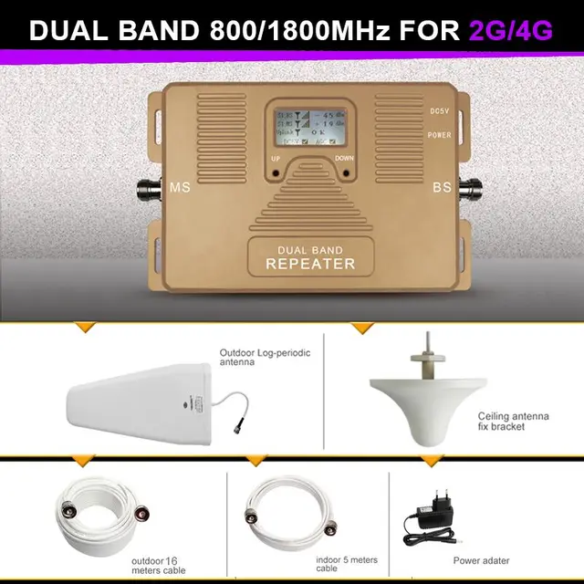 A product image showcasing a dual band 800/1800MHz repeater with a digital display and a rugged design. The repeater is mounted on a wall with a grey background. Below the image, there is a detailed product description with technical specifications, including the frequency range, power output, and dimensions. The descr... | NEW prodect !!DUAL BAND 2g+4g 800/1800mhz mobile signal booster cellular cell | b37d2552a19889b7d1d77dfa5214a5c0680ba9e2b0b27e2817de26a05ad77f22 | 001229696987 | 0 | 0 | 70 | 11 | 0 | 0 | |