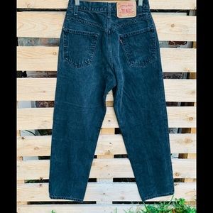 A pair of blue denim jeans with a button fly and a small patch on the back waistband is laid out on a wooden surface. | Vintage High waisted Levi\xe2\x80\x99s 550 black jeans . | b03c7aa12f41f07f492edc93eafb9eef92a9e81250c63c68cb93108e6223abe3 | 001229696901 | 0 | 0 | 25 | 8 | 0 | 0 | |