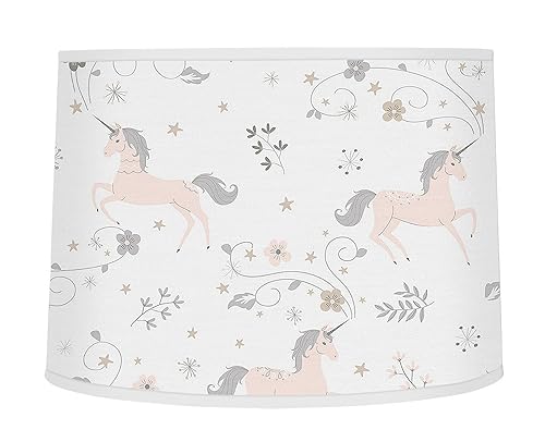 A white lampshade with a whimsical unicorn pattern featuring pink and white unicorns, stars, and floral designs. | Pink, Grey and Gold Lamp Shade for Unicorn Collection by Sweet Jojo Designs | 6dcbb1e44e6e9272ec8e0afd343dc272ba8759e6e51c6ecc8d4af5e8ee014b20 | 001229696888 | 0 | 0 | 17 | 13 | 0 | 0 | |