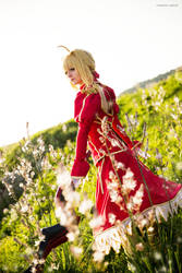 A young girl in a red dress with golden embroidery is walking through a field of white flowers. | Nero Claudius by MarinyanCosplay | 7966640bea2e18e8521f4bf66427e3afb8ffad5c82a5c7e8efffabd51d58cfd1 | 001229696960 | 0 | 0 | 18 | 4 | 0 | 0 | |