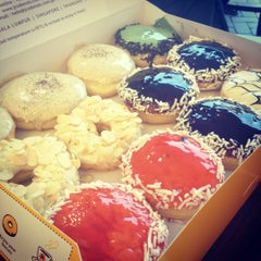 A box of assorted donuts is displayed. The donuts are topped with various frostings and sprinkles, including red, white, and green. Some donuts have chocolate frosting, while others have white or cream-colored frosting. The box is open, showing the donuts inside, and there is a piece of paper with text at the top left ... | Photo taken at J.CO Donuts & Coffee by Paolo Mendoza on 7/10/2012 | 71d0c0f7decd97dac4a98336bf7e83e104922f39ecbdd26c79177c7a6b930e36 | 001229696999 | 0 | 0 | 58 | 12 | 0 | 0 | |