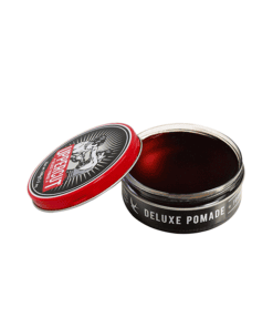 A red and black tin can with a skull and crossbones design on the lid is open, revealing a dark brown wax inside. The tin can has the word 'DELUXE' written in white on the bottom. The background is a plain white color. | Uppercut Deluxe Pomade 100 gr | c60cc44a17118bad4be5a27851496cb47d3361717b7679b95561daa855c95b0d | 001229696800 | 0 | 0 | 43 | 5 | 0 | 0 | |