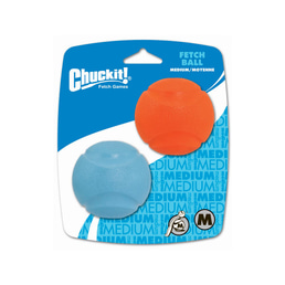 A blue and orange Chuckit! ball with a white logo on the packaging. The packaging is blue with a white border and the words 'CHUCKIT!' and 'FLECH BALL' written in white. The orange ball is on the left side of the packaging, and the blue ball is on the right side. The packaging also has a 'MEDIUM' label in the center. | Chuckit! Fetch Ball M - 2 St\xc3\xbcck | 57b2798908d93bbac29cf6607c2199dc92363ae621ef7bf9b3116837fe659492 | 001229697254 | 0 | 0 | 61 | 7 | 0 | 0 | |