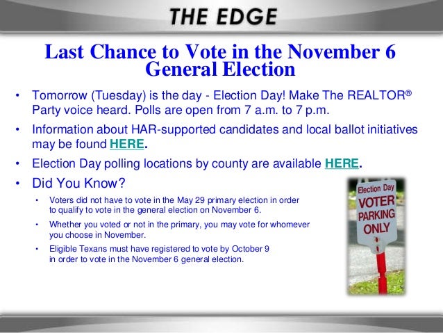 A flyer for the November 6th General Election with a red and white 'VOTE' sign in the foreground. The flyer includes information about the election, such as polling locations, candidates, and voting requirements. It also mentions the 'Last Chance to Vote' and encourages eligible voters to participate in the election. | Last Chance to Vote in the November 6 General Election\xe2\x80\xa2 Tomorrow (Tuesday) is the day - Election Day! Make... | 1c328621c36df33a1011f5d96575a8af9c58fd1f0a16b78449a944287666f458 | 001229697541 | 0 | 0 | 50 | 19 | 0 | 0 | |