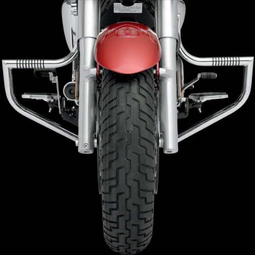 A close-up of a motorcycle's rear wheel with a red brake disc and a black tire with a patterned tread. The wheel is mounted on a frame with visible suspension components and a metallic finish. The background is dark, emphasizing the wheel and its details. | Lindby Custom Multibar Chrome for Yamaha V-Star 950 09-11 () | 5b2c0c4556705ffe037b950b1ef23559ff109363d25016b6c6effd498386118d | 001229697470 | 0 | 0 | 45 | 10 | 0 | 0 | |