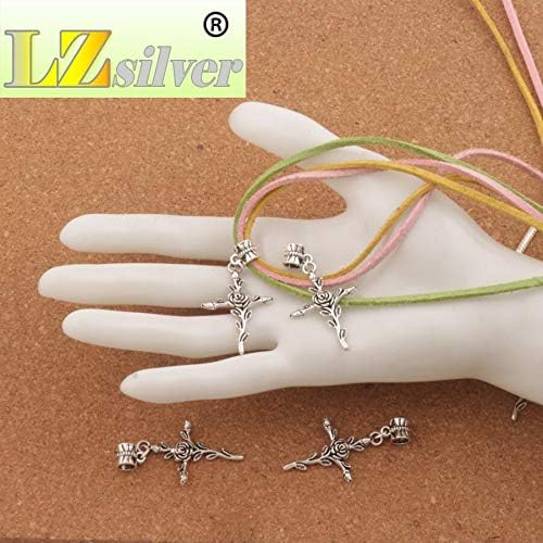 A hand holding a silver cross pendant with a green and pink cord, surrounded by three smaller silver cross pendants on a brown surface. | Calvas Vintage Rose Flower Cross Charm Beads 15PCS Antique Silver Dangle Fit European Bracelets Jewelry DIY B440 23.5x45.7mm | 0bd81333fe0697fb48e1b352109333066df45a287d9d4ddd6367116014376534 | 001229697507 | 0 | 0 | 24 | 18 | 0 | 0 | |