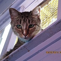 A grey tabby cat with green eyes is sitting on a wooden windowsill, looking out of a window with a mesh screen. The cat's fur is striped with darker grey and white patches, and it appears to be gazing at something outside. The windowsill is part of a blue wall, and there is a visible crack in the wall near the cat's pa... | Domestic Shorthair Cat for adoption in Coos Bay, Oregon - Oscar | c6ff6e3ecff7b7d310149593deadadf44d34380c8f50780b2d45f62ea5dfdd2e | 001229697443 | 0 | 0 | 63 | 11 | 0 | 0 | |
