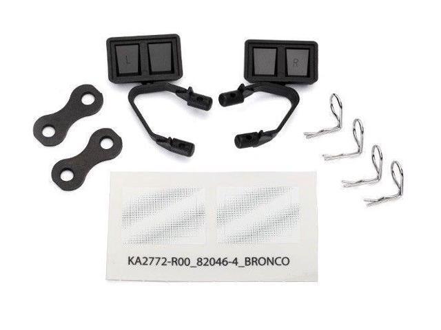 A set of black car seat belt buckles is displayed on a white background. The buckles are accompanied by a white label with the text 'KAZ7-ROO 8006-4 BRONCO' and a black label with the text 'KAZ7-ROO 8006-4 BRONCO'. There are also two black car seat belt buckles, two black car seat belt buckles with a silver clip, and t... | Traxxas 8073 side Mirrors black (2) TRX-4 Ford Bronco - Newegg com | 5d5ce1c990fe71f812b52e7dc548fd71537e9e0eab56481c961b6a1a210e5f2e | 001229698013 | 0 | 0 | 72 | 12 | 0 | 0 | |