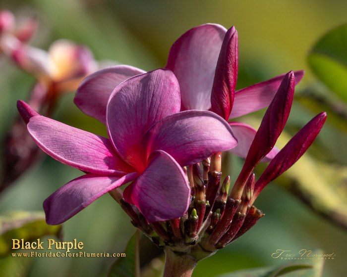 A close-up image of a pink flower with a blurred background. The flower has a prominent stamen and is surrounded by green foliage. The image is titled 'Black Purple' and has a watermark at the bottom right corner. | Black Purple aka Muang Anchan Plumeria | 5f0ce06a562aa625958753d08a213274416b75653198773e3f86d5b9fec73594 | 001229697991 | 0 | 0 | 38 | 6 | 0 | 0 | |