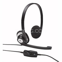 A black wireless headset with a microphone is displayed against a white background. The headset has a circular earcup on each side and a black headband that wraps around the top of the head. The microphone is detachable and has a black boom arm. The headset is connected to a small black control unit with a USB connecto... | 981-000009 - Clearchat Stereo Headset | 43bb12e7e3776252e0b1e2ed8fa8a18c2e971563b15ea0919d60e5665c278ecc | 001229698316 | 0 | 0 | 58 | 5 | 0 | 0 | |