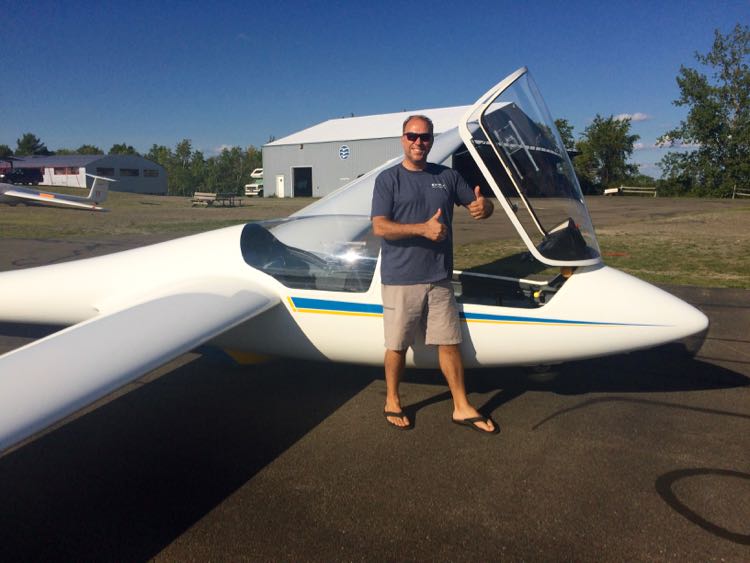 A man is standing next to a small white airplane with a blue stripe on the wing, giving a thumbs-up gesture. He is wearing a blue t-shirt, beige shorts, and black flip-flops. The airplane has a clear canopy, and the scene appears to be set on an airport tarmac with a building in the background. | Great Travel Experiences: Harris Hill Soaring, Elmira, New York. | 4706f512d7c9493ec00a539b0a4788f0da318020071fec09a73bee1a069b70ad | 001229698305 | 0 | 0 | 55 | 9 | 0 | 0 | |