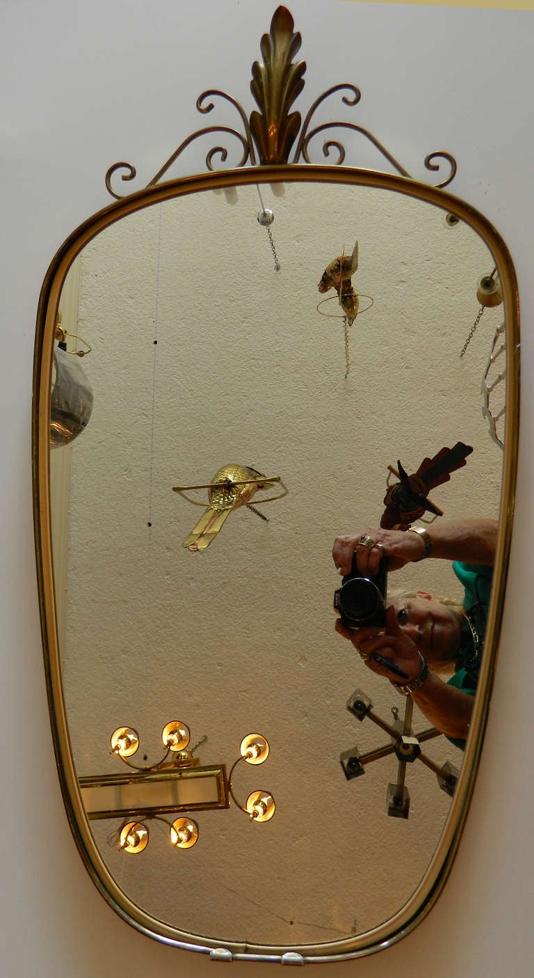 A person is taking a selfie in a room with a large ornate mirror on the wall. The mirror reflects the person, a chandelier with lit bulbs, and various decorative items hanging from the ceiling. The room has a beige carpet, and the person is wearing a green shirt. | Italian shield mirror, circa 1950. | 1483f924e00c6a6dea3a33bd043aa553eaa2d57d77590c49e58b8e3306c4803d | 001229698641 | 0 | 0 | 49 | 5 | 0 | 0 | |