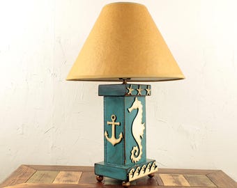A vintage-style lamp with a beige lampshade and a teal base featuring a nautical theme with a compass rose and an anchor design. The lamp is placed on a wooden table with a visible grain pattern. | Silver desk lamp silver lamp shade original lamp recycled beach house lamp nautical decor beach decor unusual lamp wood desk table lamp rustic wood lamp aloadofball Images | a6c0314ed51e8272ad0f3d3da87f39b6ad7257b1307470e42d899fde28d206bb | 001229698359 | 0 | 0 | 36 | 27 | 0 | 0 | |