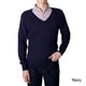 A man is wearing a dark blue sweater with a V-neckline and a subtle texture. The sweater is paired with dark blue jeans. | American Apparel Men's Lightweight Knit V-neck Sweater - Thumbnail 0 | df1f8d94bfaca46b39ae2af0706c5d92a56e5565431fd4ad713c4fd6f5e75831 | 001229699334 | 0 | 0 | 23 | 10 | 0 | 0 | |