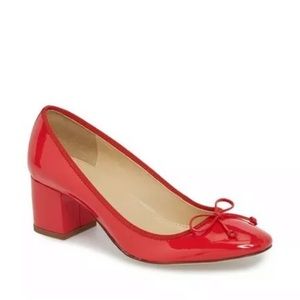 A pair of red high heels with a glossy finish and a pointed toe. The heels have a thin strap with a bow detail at the front. The shoes are placed against a white background. | NIB J Crew Leonard Red Leather Block Heel Sz 6.5 | f33fcf94daf4312820b87d002fc115bd0d63854f9a364752a6b018ababd34e31 | 001229699395 | 0 | 0 | 35 | 10 | 0 | 0 | |