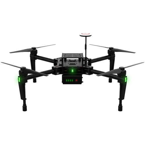 A black drone with four propellers is hovering in the air. The drone has a small camera attached to its underside, which is illuminated with green lights. The drone is positioned against a white background. | DJI Matrice 100 Quadcopter # CP.TP.000029 by DJI | ab36475d0181d5e1d90f547aa3897e375e72c0e08093bbd79148369e47c9c9f2 | 001229699481 | 0 | 0 | 35 | 8 | 0 | 0 | |