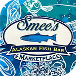 The first image shows a stylized logo for 'Smee's Alaskan Fish Bar & Marketplace'. The logo features a blue fish with a white belly and a black outline, set against a teal background with a pattern of blue swirls and fish silhouettes. The text 'Smee's' is in a bold, white font at the top, followed by 'Alaskan Fish Bar'... | Smee's Alaskan Fish Bar & Marketplace | 2a35828be2683124cbbefe9635d69a6ebe147ff47440553738609b322bd02915 | 001229699371 | 0 | 0 | 90 | 6 | 0 | 0 | |