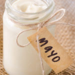 A glass jar filled with a creamy white substance, possibly mayonnaise, is tied with a brown string. A small piece of paper with the word 'Mayo' written in black marker is attached to the string. The jar is placed on a surface with a textured brown background. | Jar of mayonaise with 'mayo' label on hessian material, a salad dressing or sandwich condiment | 39b57c9fcad4dd8680f427438f020d7e17e254fd905d9cfc73fb60f84bb3a973 | 001229699391 | 0 | 0 | 47 | 15 | 0 | 0 | |