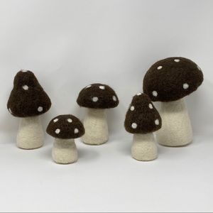 A collection of five plush mushroom toys with brown tops and white spots are arranged on a white background. The mushrooms vary in size, with the largest one on the right and the smallest one on the left. | 5 Artisan made Felted Mushrooms | 3ad6e35690c8beb6638eb8912964f12866996c6e0deabf494efa6667ff6fedd5 | 001229699717 | 0 | 0 | 38 | 5 | 0 | 0 | |