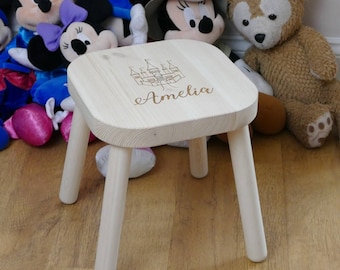 A wooden stool with a personalized name 'Amelia' engraved on it is placed on a wooden floor. The stool is surrounded by various stuffed animals, including a teddy bear, a Minnie Mouse plush, and a Mickey Mouse plush. | Children's Stool | Personalised Kids Chairs | 1f8c3c20a191657b09d5b6b0e0284f198c4a7f1ea45cca7bc7d117d5caf8bb4f | 001229699885 | 0 | 0 | 38 | 6 | 0 | 0 | |
