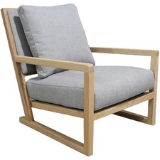 A modern wooden chair with a grey cushioned seat and backrest is displayed against a white background. | Miki Lounge Chair | c2ad9262993a8f528bfa0722a7091eb3497f316e99712db0f5af8c05a0ac0199 | 001229700003 | 0 | 0 | 17 | 3 | 0 | 0 | |
