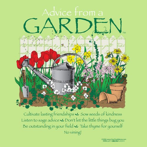 The second image is a colorful illustration of a garden scene with a variety of flowers and plants. In the foreground, there is a watering can with red tulips and yellow daisies around it. The background features a fence with a pattern of flowers and leaves. The text at the top reads 'Advice from a Garden' and is styli... | Advice From A Garden | 18e6a7147295b7a5870ef7265d9eebb2af2dbea4ccfe17b3cbca66a1cb82d71e | 001229700147 | 0 | 0 | 94 | 4 | 0 | 0 | |