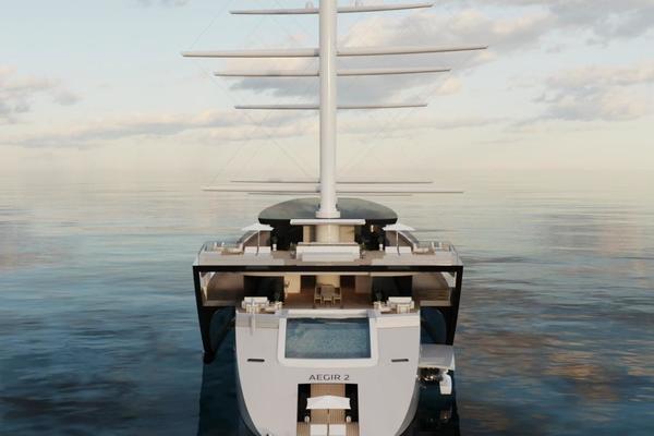A modern yacht with a sleek white design and a large, curved sail-like structure on top is floating on calm waters. The sky is clear with a few clouds, and the water reflects the yacht and the sky. | 262ft Custom Yacht For Sale | c067a4e44468c7e35281dd60cd6abb018c3260079a9a57db73f53f729e735e18 | 001229701010 | 0 | 0 | 38 | 5 | 0 | 0 | |