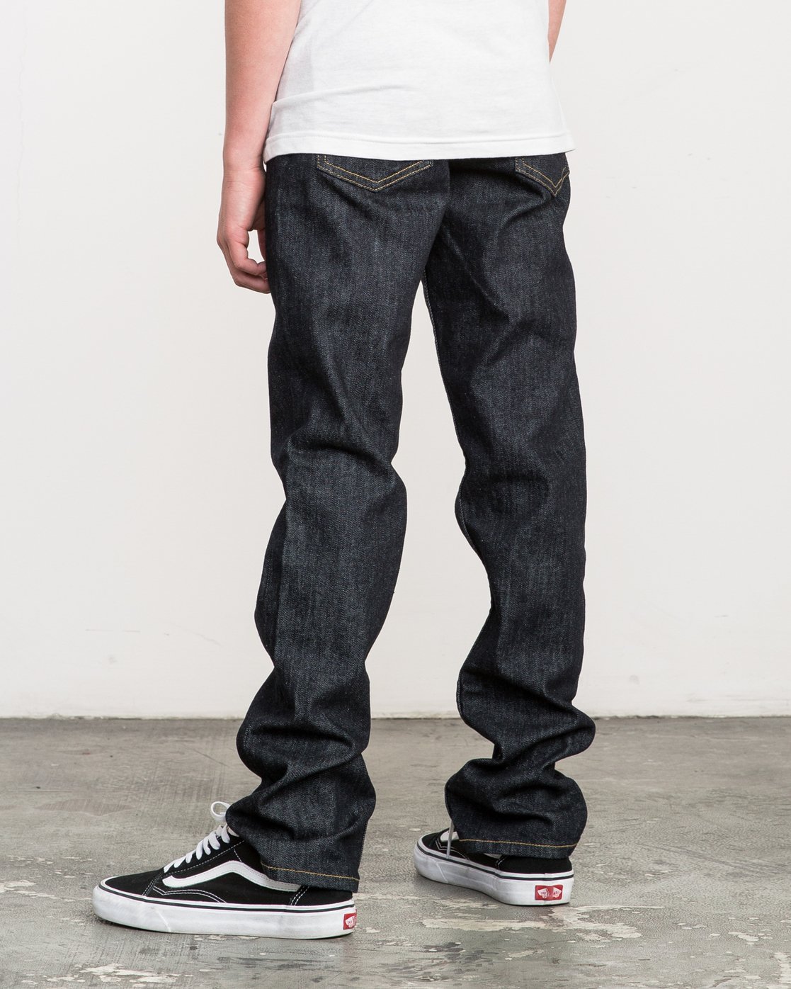 A person is standing with their back to the camera, wearing a white t-shirt and blue jeans. They have black sneakers on their feet. | 2 Boy's Daggers Denim Jeans Blue B301QRDA RVCA | 3545c814d60303061f9065ebf352f2e1c5f5db5d4846d42054d7ffb107b93ff5 | 001229701001 | 0 | 0 | 24 | 8 | 0 | 0 | |