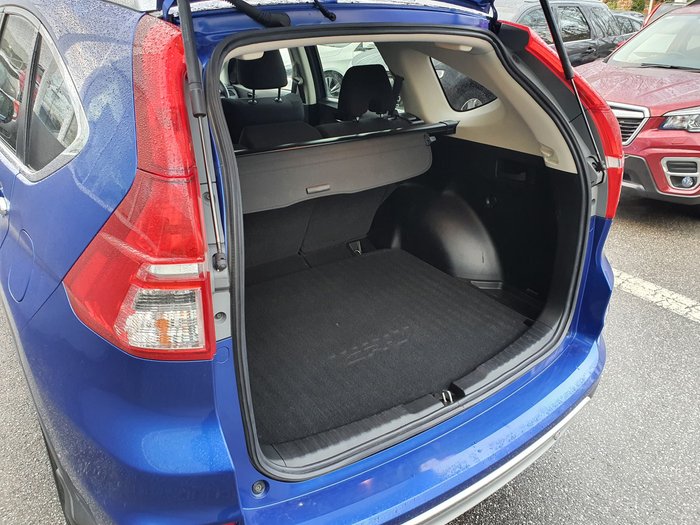 The first image shows the open trunk of a blue car with a black interior. The trunk is empty, and the car is parked on a street with a red car visible in the background. The trunk's interior is visible, showing a black rubber mat and a metal frame. The car's license plate is not visible. | 2014 Honda CR-V VTi-L RM Series II MY16 Blue | 8a3c4aebfd97ff333c96bbf4edf62710c54f9979c6b0542ee30f5abb19814d12 | 001229700981 | 0 | 0 | 56 | 9 | 0 | 0 | |