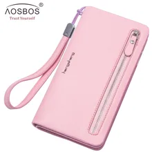 A pink leather wallet with a zipper closure and a strap is displayed. The wallet has a brand name 'LIVNG' embossed on the front. The zipper is silver, and there is a small metal zipper pull. The wallet is placed on a surface with a white background, and there is a text overlay that reads 'AOSBOS TRUST YOURSELF' in a cu... | Aosbos Women PU Leather Clutch Phone Wallet Zipper Long Designer Leather Coin Purses Solid Money Bag Purse 2019 Card Wallet | 9164fbd9db13759f3e529e0477386db0e87af90fd692aeeb789af02de3195ccb | 001229701135 | 0 | 0 | 62 | 20 | 0 | 0 | |