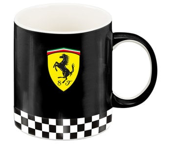 A black coffee mug with a glossy finish and a checkered pattern around the bottom. The mug features a large, colorful Ferrari logo on the side, with a red horse and green and yellow stripes. The Ferrari logo is centered on the mug, and the text 'SF' is visible below it. The handle of the mug is black and extends from t... | Ferrari Mug Scuderia Logo Black 350 ml | 7a16ec0ab72c13c1e7604bb49b807eb210354b9a21abd37a3e0de30eec7230b0 | 001229701246 | 0 | 0 | 65 | 7 | 0 | 0 | |