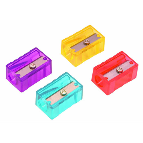 A set of four colorful plastic boxes with a single metal nail in each. The boxes are arranged in a square formation with one box in each corner. The colors are yellow, green, purple, and red, and each box has a nail with a metal head and a pointed tip. | Helix Classic Pencil Sharpener Pk 50 | ec5f0a514553ec3223d0ddcc1e0d1209c082a699562aede6baec2ab30b69eaba | 001229701159 | 0 | 0 | 50 | 6 | 0 | 0 | |